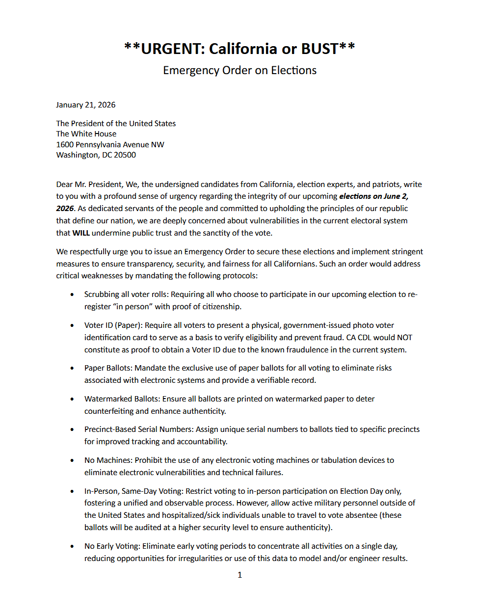 A urgent Letter to President Trump on the integrity of our upcoming elections